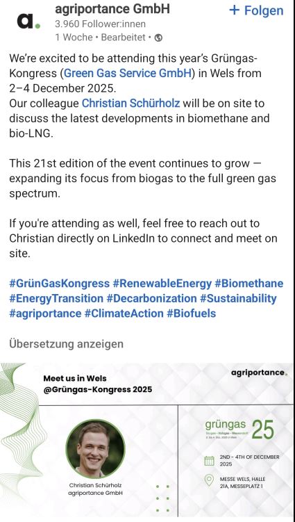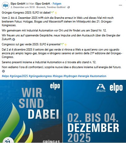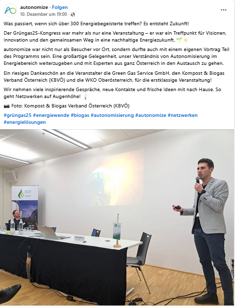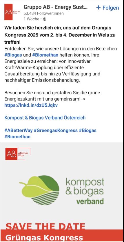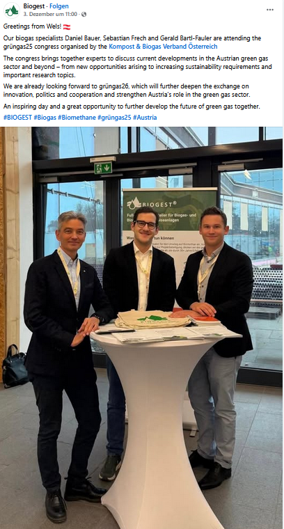 Die Green Gas Service GmbH veranstaltete in Kooperation mit dem Kompost und Biogas Verband Österreich, sowie der WK OÖ vom 2. bis 4.12.2025 den 3-tägigen Grüngas-Kongress in der Messe Wels.